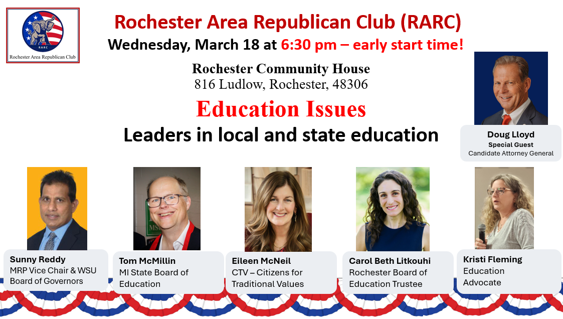 Michigan Republicans: 2026 State Endorsement Convention Thursday March 28, 2026. [...]